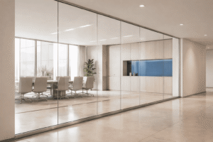 واجهات زجاج بدون فريم تمنح مظهرًا معماريًا نظيفًا، بتثبيت على U-channel/ستانلس وسيليكون وعزل مناسب لثبات أعلى ومتانة أفضل.
